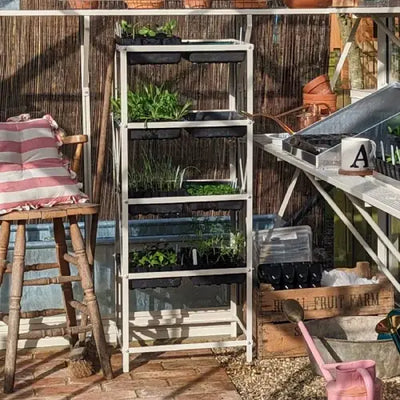 The Rhino Seedrack comes in handy, taking up very little floor space (in fact the space of just three seed trays), it will store fifteen trays. You can also colour match your seedrack to your Rhino Greenhouse!